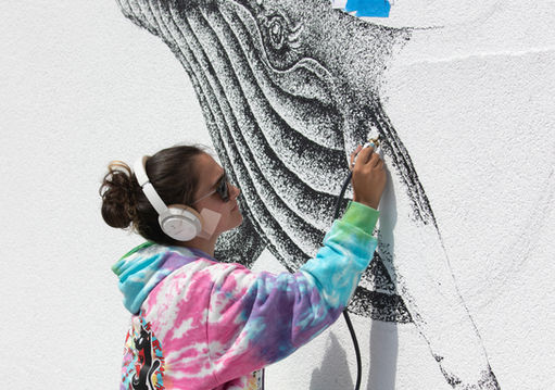 During the spring of 2021, I had the amazing opportunity to create two new murals in Long Beach, NY overlooking the boardwalk. It was an incredible honor to be back painting in this special location! The theme of these murals is ocean conservation and protection of the sacred sea. I am so grateful to everyone who made this mural possible, including the Long Beach Arts Council for trusting me to paint these two new murals so close to my very first mural - the Rising Whale.